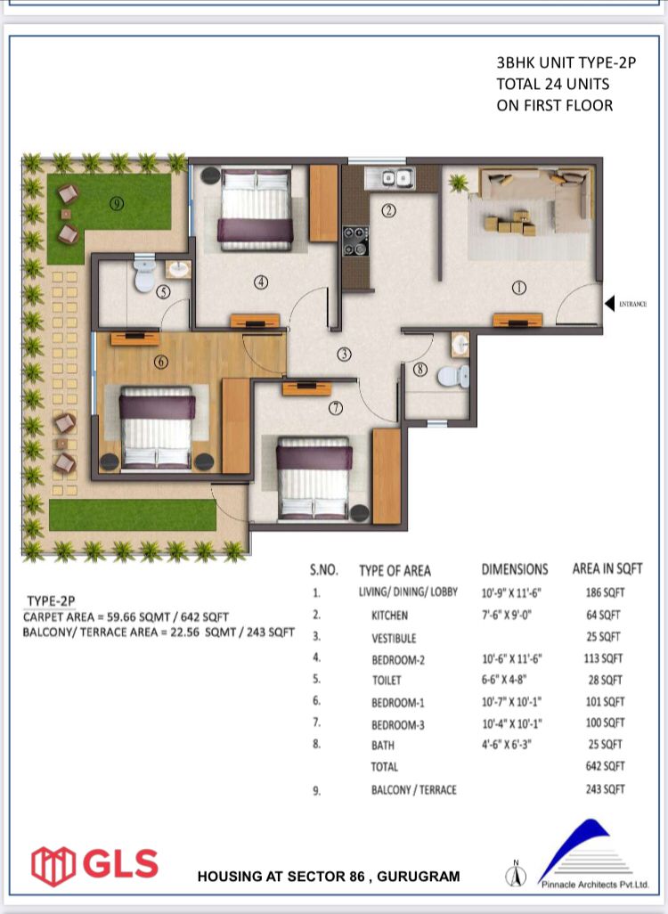 - Available options for the apartments are 3 BHK and 2 BHK in GLS Avenue 86.